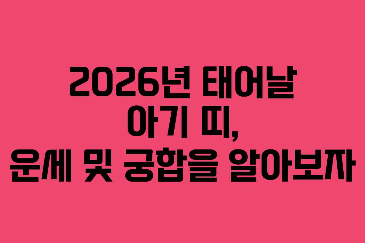2026년에 태어나는 아기는 병오년의 말띠입니다. 이들은 불의 기운을 지니며, 활발하고 도전적인 성격을 가지고 있습니다.