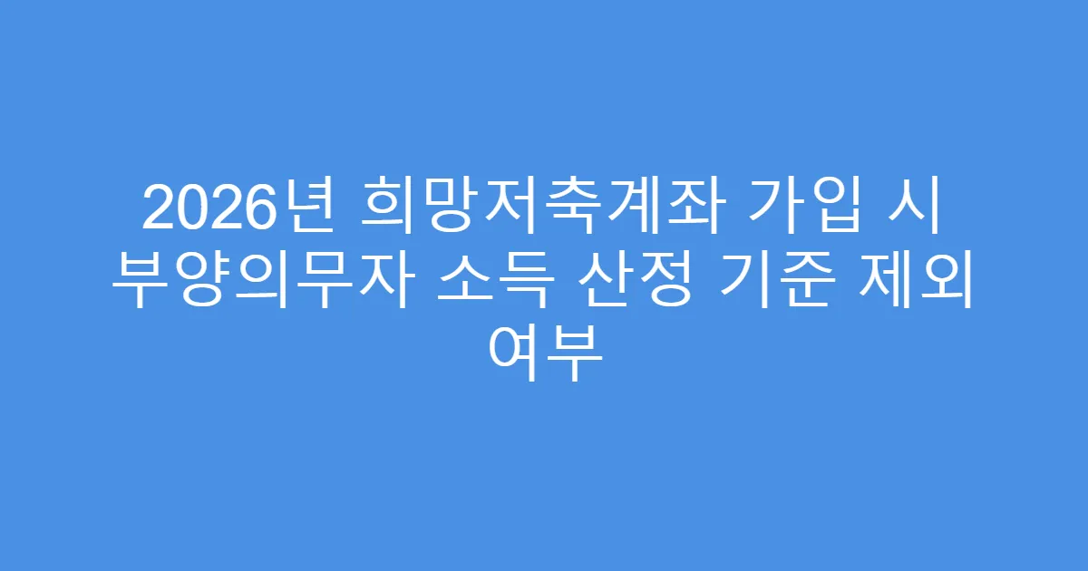 💡 2026년 희망저축계좌 부양의무자 소득 산정 기준 제외 여부 핵심 가이드