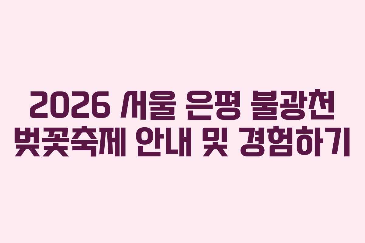 2026년 봄, 서울 은평구의 불광천에서 열리는 벚꽃축제는 매년 많은 이들에게 사랑받는 행사입니다. 올해는 특별히 벚꽃과 별빛이 어우러지는 아름다운 순간들을 만끽할 수 있는 기회가 주어집니다. 이 축제는 단순한 벚꽃 구경을 넘어서, 다양한 공연과 먹거리를 통해 더욱 풍성한 경험을 제공합니다.