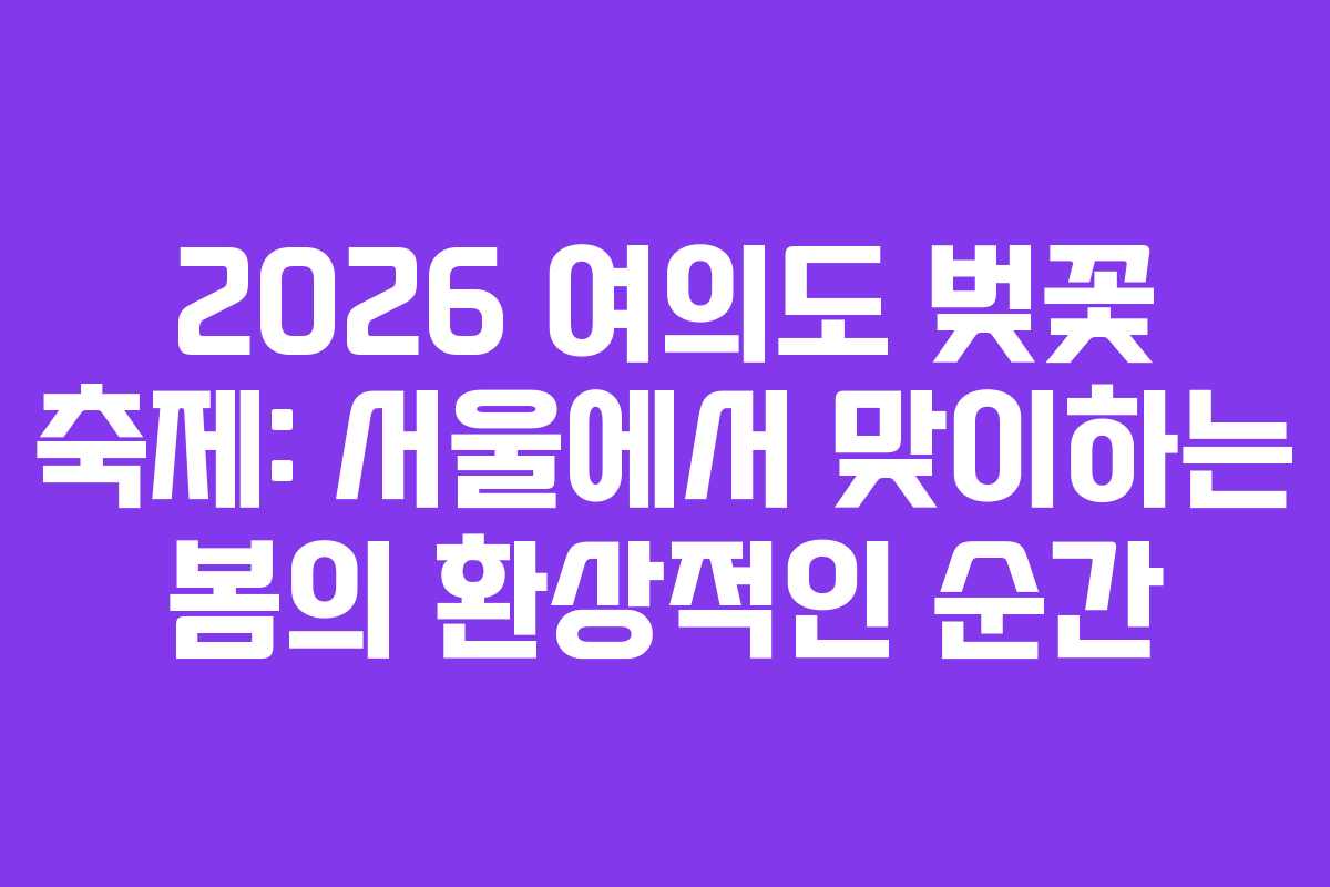 2026년의 봄, 서울 여의도에서 펼쳐질 벚꽃 축제는 매년 수많은 사람들에게 사랑받는 특별한 행사입니다. 여의도 윤중로는 벚꽃 시즌에 맞춰 장관을 이루며, 한강과 어우러진 아름다운 풍경을 제공합니다. 올해도 많은 시민과 관광객이 이곳을 찾아 벚꽃의 아름다움과 함께 특별한 순간을 만끽할 것입니다.