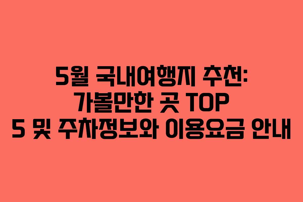 5월은 따뜻한 날씨와 다양한 휴일로 인해 여행을 계획하기 좋은 시기입니다. 이번에는 5월에 방문하기 좋은 국내 여행지 5곳을 소개하고, 각 지역의 주차정보 및 이용요금을 정리해보겠습니다. 이 정보를 통해 가족, 친구, 연인과의 여행 계획에 도움이 되길 바랍니다.