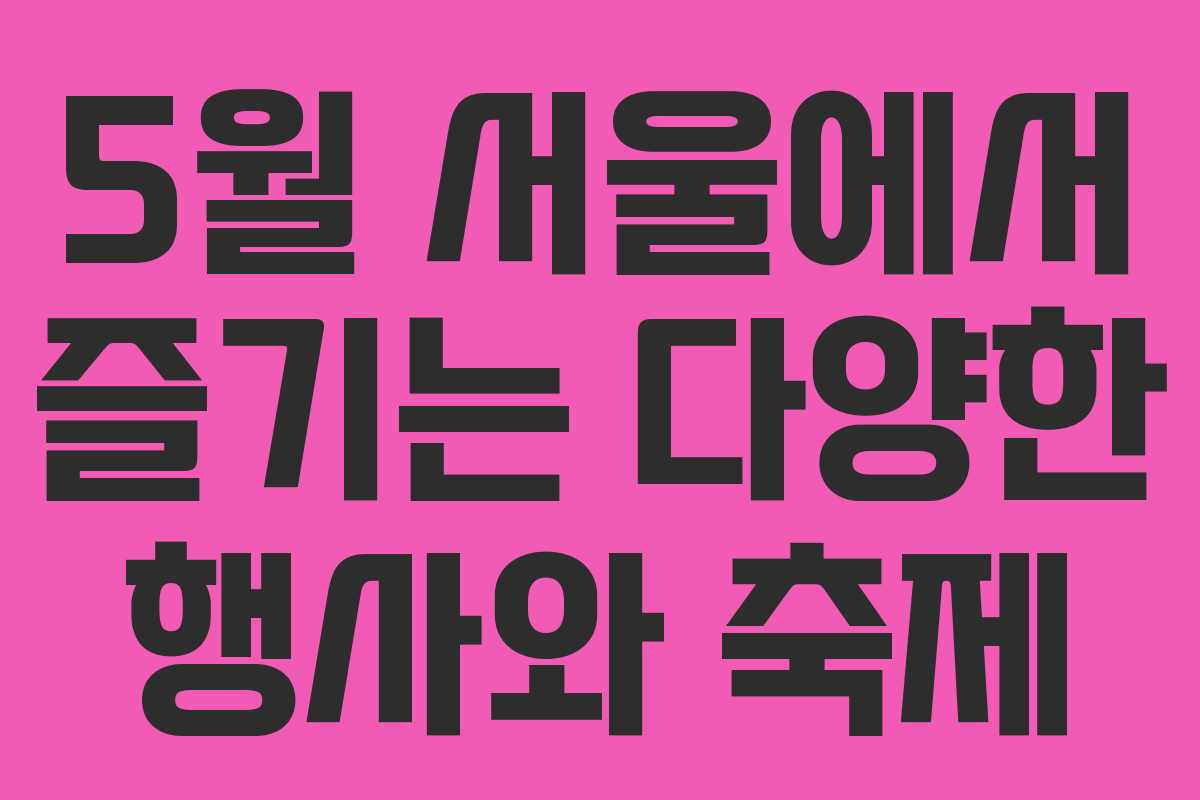 5월은 가족과 함께 나들이하기에 적합한 계절입니다. 서울에서는 다양한 행사와 축제가 열려 가족과 친구들과 즐거운 시간을 보낼 수 있는 기회가 많습니다. 이번 포스트에서는 5월에 서울에서 열리는 주요 행사와 축제를 소개합니다.