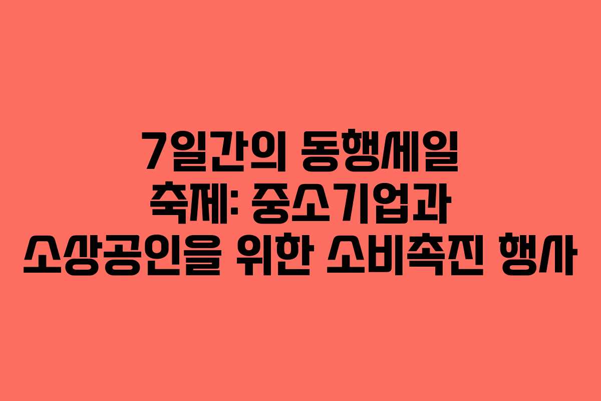 중소기업과 소상공인의 제품 소비를 촉진하기 위한 ‘7일간의 동행세일 축제’가 올해로 3년째 진행됩니다. 이 축제는 대규모로 펼쳐지는 국내 최대의 소비촉진 행사로, 다양한 유통사와 전통시장이 참여하여 중소기업 제품을 홍보합니다.