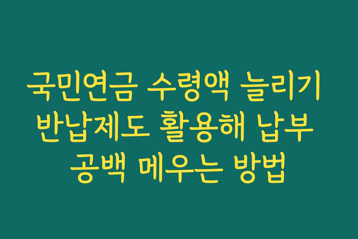 ⚡ 국민연금 수령액 늘리기 반납제도 활용해 납부 공백 메우는 방법 똑똑하게 해결하는 방법