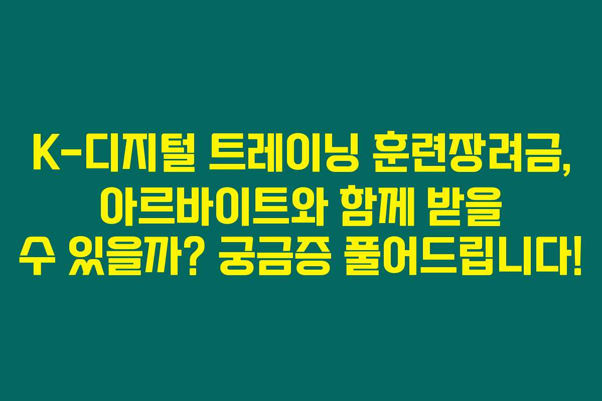 K-디지털 트레이닝 훈련장려금을 수급 받고 싶다면, 아르바이트의 근로시간 조건이 중요합니다. 제가 직접 알아본 바로는, 아르바이트를 한다고 해서 무조건 훈련장려금을 못 받는 것은 아니지만, 몇 가지 조건을 충족해야 합니다.