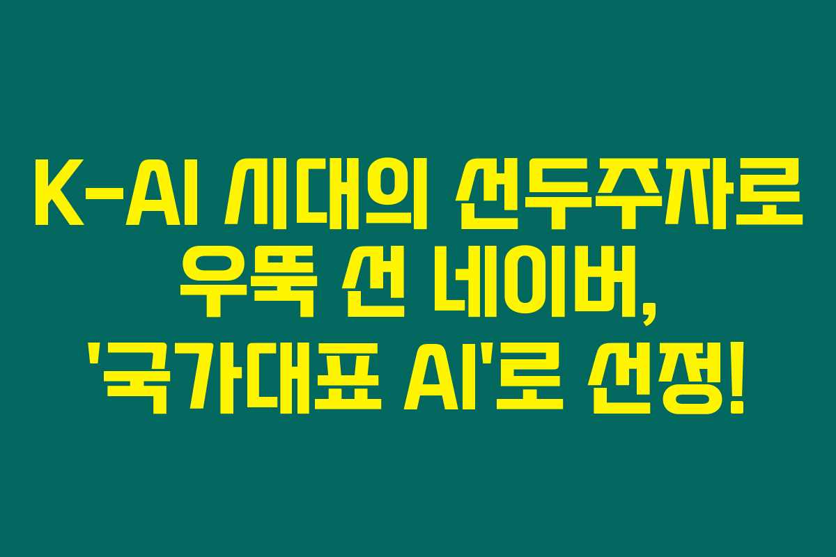 2025년 8월 4일, 네이버가 과학기술정보통신부의 ‘국가대표 AI’ 프로젝트에 선정되었습니다. 이는 한국 AI 산업의 중요한 이정표로, 네이버는 자체 기술로 글로벌 시장에서도 영향력을 확대하며 K-AI의 중심으로 떠오르고 있습니다. 아래를 읽어보시면 네이버의 AI 전략과 그 의미에 대해 더욱 깊이 이해할 수 있습니다.