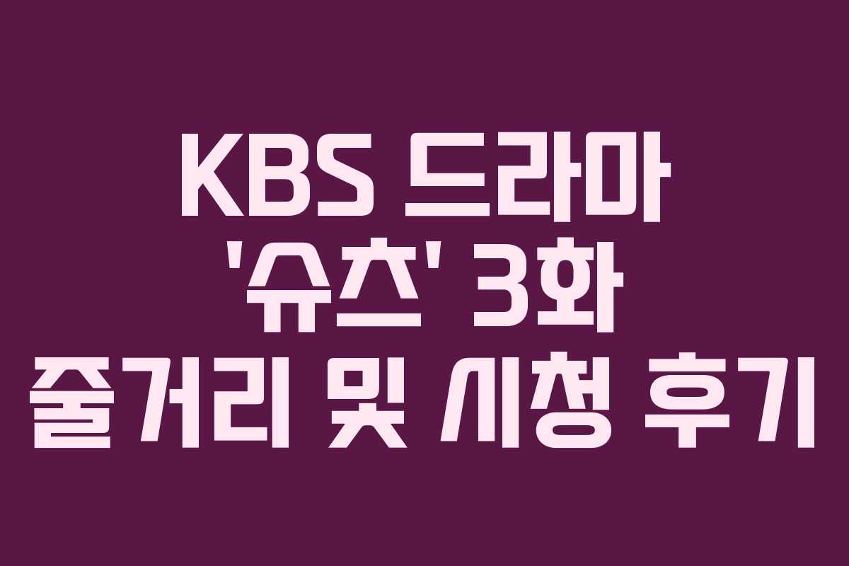 KBS 드라마 ‘슈츠’의 3회는 5월 2일 수요일에 방송되었습니다. 이번 회차는 긴장감 넘치는 전개와 유머가 적절히 조화를 이루어 시청자들에게 큰 재미를 선사했습니다.