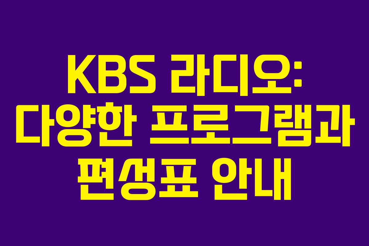 KBS 라디오는 여러 채널을 통해 다양한 프로그램을 제공하여 청취자들에게 풍부한 선택지를 선사합니다. 특히, KBS 라디오 웹사이트를 통해 시간대별 편성표를 쉽게 확인할 수 있어 청취자들이 관심 있는 프로그램을 찾고 청취 계획을 세우는 데 큰 도움이 됩니다.