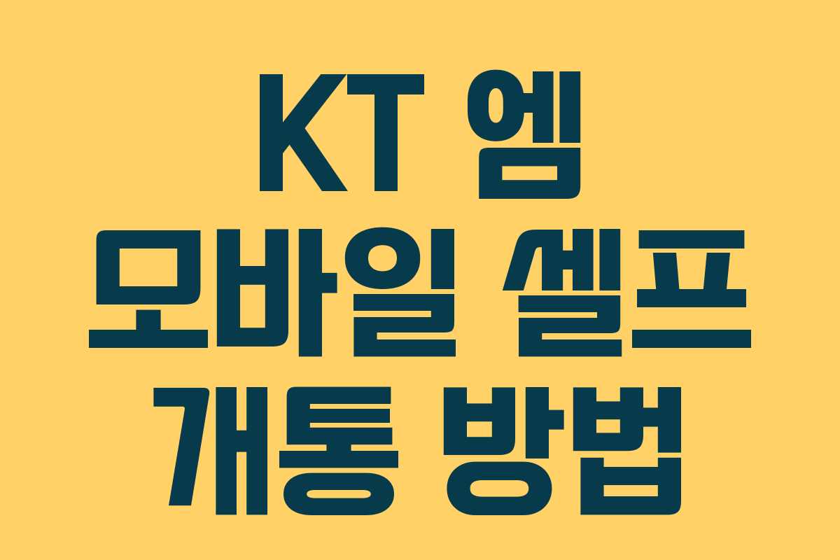 KT 엠 모바일의 셀프 개통 절차는 간단하게 진행할 수 있으며, 유심 구매부터 요금제 선택, 최종 개통까지의 과정이 명확합니다. 저렴한 알뜰폰 요금제를 이용하여 많은 혜택을 누려보세요.
