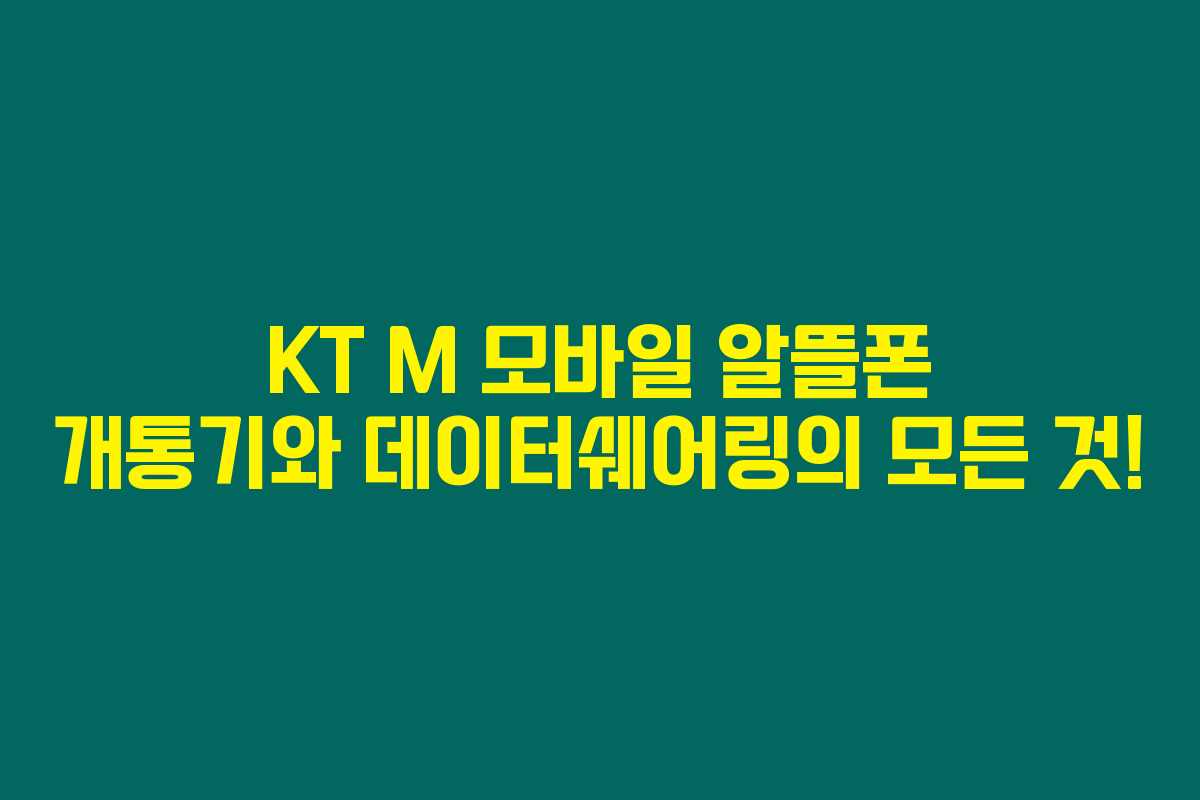 KT M 모바일 알뜰폰은 요즘 많은 인기를 얻고 있는 선택이죠. 하지만 아직도 알뜰폰 개통에 대한 두려움이 있는 분들은 없으신가요? 데이터쉐어링의 장점과 함께 저의 직접 경험을 바탕으로 자세히 설명할 테니 참고해보세요.