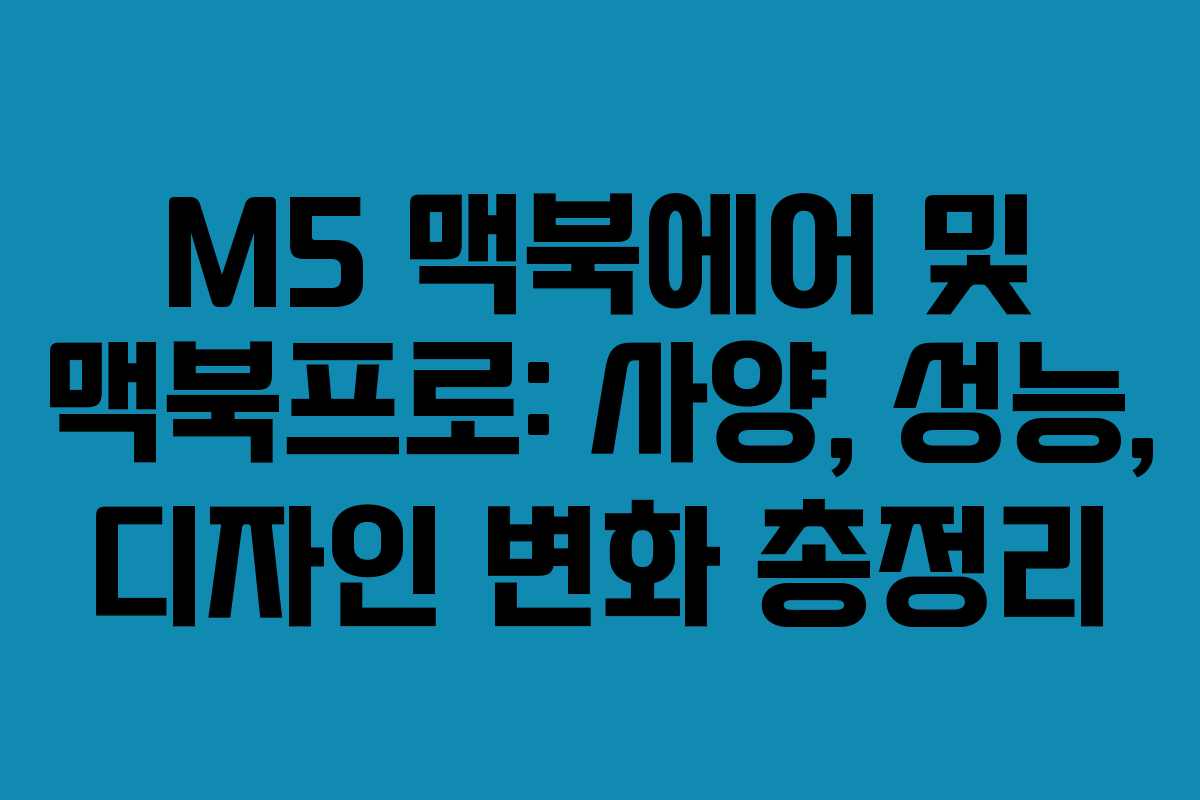 2025년, 애플의 새로운 M5 맥북 시리즈가 출시를 앞두고 있습니다. 이번 글에서는 M5 맥북에어와 M5 맥북프로의 디자인 변화, 성능 업그레이드, 출시일 및 가격 정보를 한눈에 정리해 보겠습니다.