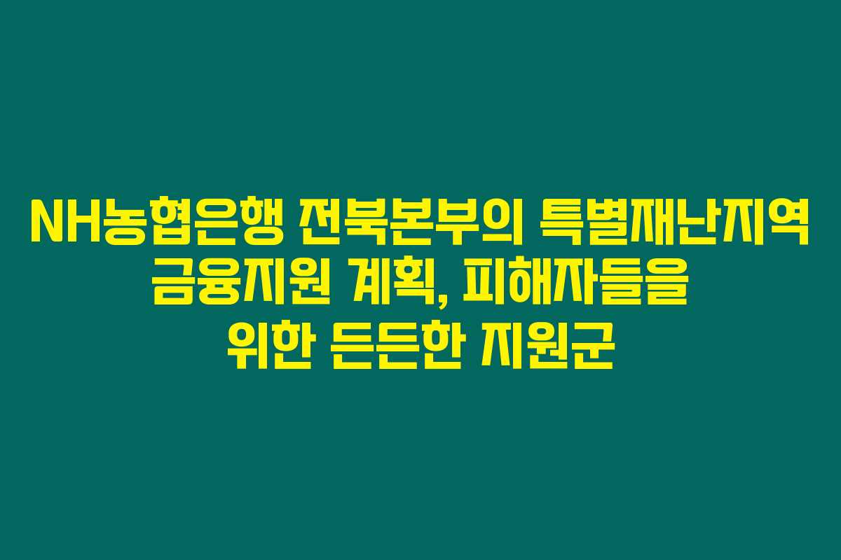 전북본부에서 추진하는 금융지원은 어떤 배경을 갖고 있는지, 그리고 피해자들에게 실질적으로 어떤 도움을 줄 수 있는지 알아보겠습니다.